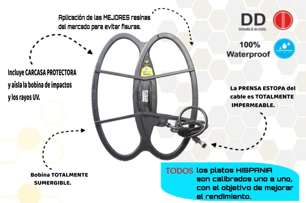 MÁXIMO se caracteriza por tener un diseño original que le permite mantener un peso muy ligero. Puedes usarlo durante una larga jornada de detección y no notarás el peso extra que proporciona un plato de estas dimensiones. Mejora las prestaciones de un plato estándar en más de un 40% con respecto a profundidad dependiendo del modelo de detector, y logra un 20% más en la cobertura de terreno.