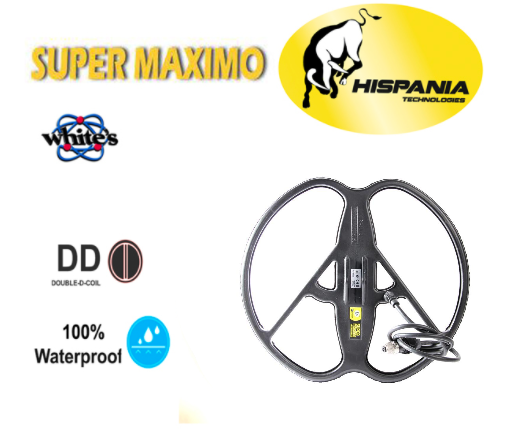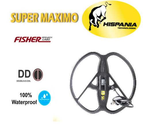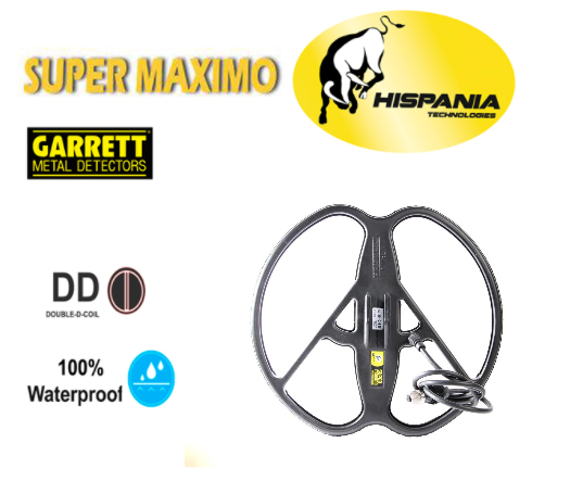 SUPER MAXIMO se caracteriza por tener un diseño original que le permite mantener un peso muy ligero. Mejora las prestaciones de un plato estándar en más de un 40% con respecto a profundidad dependiendo del modelo de detector, y logra un 20% más en la cobertura de terreno.